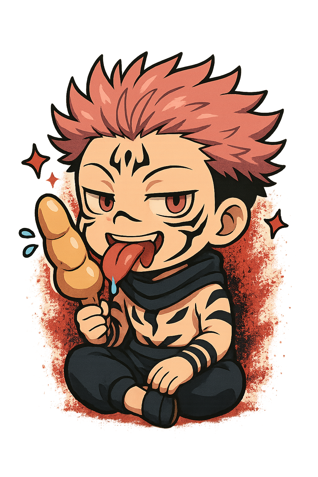 A estampa Sukuna Divertido mostra o Rei das Maldições em sua versão mais irreverente e fofa, em estilo chibi, se deliciando com um petisco de forma inesperada e engraçada. Uma mistura perfeita de humor e carisma que transforma até o mais temido vilão em uma figura irresistível.